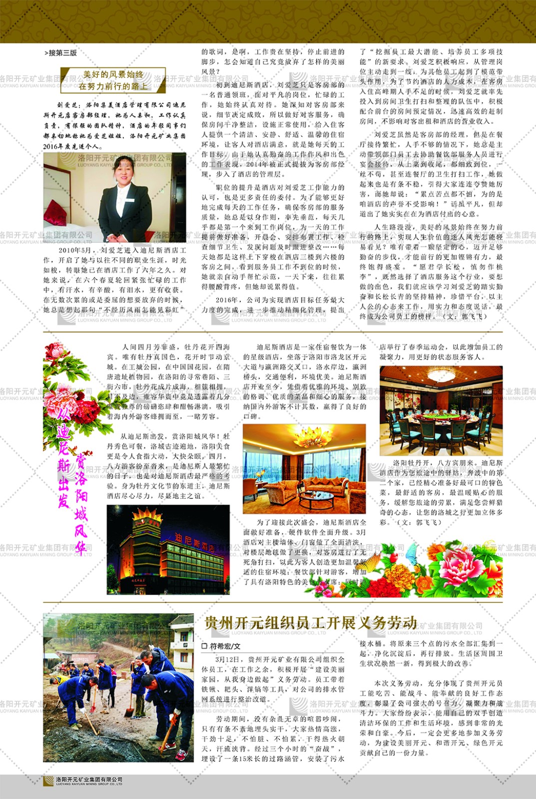 洛陽(yáng)開(kāi)元礦業(yè)集團(tuán)有限公司簡(jiǎn)介洛陽(yáng)開(kāi)元礦業(yè)集團(tuán)有限公司,始成立于2006年,位于洛陽(yáng)市開(kāi)元大道269號(hào)。集團(tuán)旗下共有五余家全資子公司,業(yè)務(wù)涉及有色金屬礦山開(kāi)發(fā)、礦產(chǎn)品購(gòu)銷(xiāo)與進(jìn)出口貿(mào)易、房地產(chǎn)開(kāi)發(fā)、文化藝術(shù)、企業(yè)管理與咨詢、資本投資等多個(gè)領(lǐng)域。民建河南省委委員、民建河南省委企業(yè)委副主任、民建洛陽(yáng)市委委員、企業(yè)委主任、洛陽(yáng)民建企業(yè)家協(xié)會(huì)會(huì)長(zhǎng)許明月是公司創(chuàng)始人,現(xiàn)任洛陽(yáng)開(kāi)元礦業(yè)集團(tuán)有限公司董事長(zhǎng)。在礦業(yè)領(lǐng)域,洛陽(yáng)開(kāi)元礦業(yè)集團(tuán)擁有多家實(shí)力雄厚的子公司:貴州開(kāi)元礦業(yè)有限公司探、采礦權(quán)面積共11.33平方公里;興海縣銅鑫礦業(yè)有限公司探礦權(quán)面積8.76平方公里,礦山資源潛力巨大;2021年,開(kāi)元集團(tuán)與盧氏中科礦業(yè)有限公司開(kāi)展戰(zhàn)略合作。盧氏中科礦業(yè)有限公司專注于有色金屬的浮選、加工和銷(xiāo)售,擁有強(qiáng)大的技術(shù)支撐平臺(tái),是集探、采、選、冶、研為一體的中大型綜合礦業(yè)企業(yè)。目前,盧氏中科王家河1000噸選礦廠已成功投產(chǎn),雙河金礦、柳關(guān)欒盧鉛鋅礦相繼順利開(kāi)工,樓房銀礦與圪老灣鉛鋅礦的深部探礦重大突破,標(biāo)志著礦山版圖取得重大進(jìn)展,為開(kāi)元集團(tuán)后續(xù)發(fā)展奠定了堅(jiān)實(shí)基礎(chǔ)。在文化傳媒領(lǐng)域,洛陽(yáng)市明月美術(shù)館通過(guò)豐富多樣的藝術(shù)展覽、學(xué)術(shù)研討和公共教育活動(dòng),努力打造一個(gè)集展覽、交流、教育、研究為一體的綜合性藝術(shù)平臺(tái)。此外,在金融投資領(lǐng)域,開(kāi)元集團(tuán)旗下的北京明峰資本管理有限公司專注于投資具有高增長(zhǎng)潛力的優(yōu)秀企業(yè),特別是高科技、新能源、環(huán)保等新興產(chǎn)業(yè),為客戶提供個(gè)性化的資產(chǎn)配置服務(wù)。在做好企業(yè)經(jīng)營(yíng)的同時(shí),開(kāi)元集團(tuán)始終不忘企業(yè)的社會(huì)責(zé)任和家國(guó)情懷,以突出的愛(ài)心公益事跡,開(kāi)展了一系列公益慈善活動(dòng):“民建林”公益事業(yè)通過(guò)“思源基金”“幫幫公益”線上公益平臺(tái),與眾多愛(ài)心人士籌措資金20余萬(wàn)元;資助541名貧困大學(xué)生共計(jì)270余萬(wàn)元,推進(jìn)“數(shù)字助力——河南AI人才培養(yǎng)”;捐款10萬(wàn)元,馳援京津冀、黑龍江洪水地質(zhì)災(zāi)害……公司于2017年底被洛陽(yáng)市慈善總會(huì)評(píng)為“洛陽(yáng)慈善風(fēng)云榜——十大愛(ài)心集體”。洛陽(yáng)開(kāi)元礦業(yè)集團(tuán)有限公司秉承持續(xù)發(fā)展理念,憑借多年來(lái)良好的企業(yè)信譽(yù)與經(jīng)營(yíng)業(yè)績(jī),與全國(guó)多家企業(yè)建立了良好合作關(guān)系,受到社會(huì)各界的一致好評(píng),多次榮獲“納稅標(biāo)兵”“先進(jìn)企業(yè)”“招商引資模范企業(yè)”等榮譽(yù)稱號(hào)?;赝麃?lái)時(shí)路,開(kāi)元人勠力同心,以“闖”的精神和“創(chuàng)”的勁頭,一路披荊斬棘,踏過(guò)千山萬(wàn)水;展望新未來(lái),開(kāi)元人凝心聚力,不執(zhí)于“舊”,無(wú)畏于“新”,秉承“勇于跨越,追求卓越”的企業(yè)精神,乘著國(guó)家高質(zhì)量發(fā)展新征程的東風(fēng),跨過(guò)高山,越過(guò)大海,向著集團(tuán)多元化、國(guó)際化的目標(biāo),逐夢(mèng)遠(yuǎn)航,跨越前行!